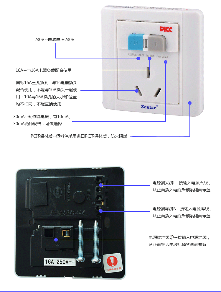 漏電保護墻壁型開關ZT6-10A/16A